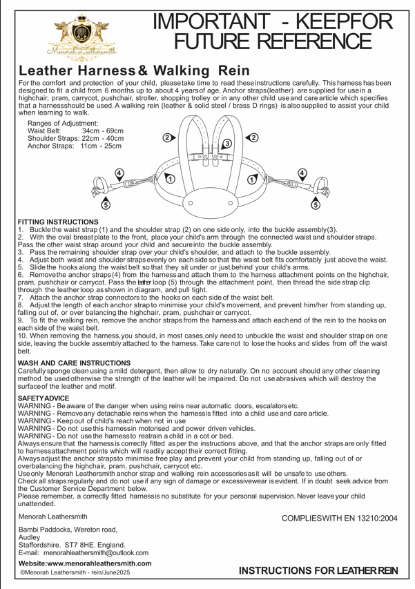 comes with lead reins anchor straps and dust bag